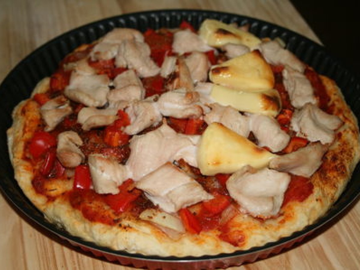 Pizza au poulet et à la vache qui rit PrécédentSuivant Autrefacile40 min500 Kcal Envoyer cette recette à un ami Imprimer cette page Poser une question à l'auteur Publier votre photo de cette recette Une pizza vite fait pour régaler les gourmands! Ingrédients 4 300 g de farine 1 sachet de levure chimique 1 bonne pincée de sel 3 cuillères à soupe d'huile de tournesol environ 200 ml d'eau tiède 1 poivron coupé en carrés 200 ml de chair de tomates au basilic 1 oignon émincé 2 escalopes de poulet 2 cuillères à café d'épices à pizza 4 vache qui rit