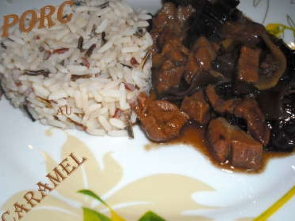 Porc au caramel aux pousses de bambou Autremoyen50 min Envoyer cette recette à un ami Imprimer cette page Poser une question à l'auteur Publier votre photo de cette recette Ingrédients 8 800g d'échine de porc 1/2l d'eau 1/2 boite de pousse de bambou 1 oignon 4 CàS de sauce soja 1 CàS de gingembre moulue 1 CàS de 4 épices 1 cube de bouillon de volaille 25 morceaux de sucre 50g de champignons noirs huile sel poivre