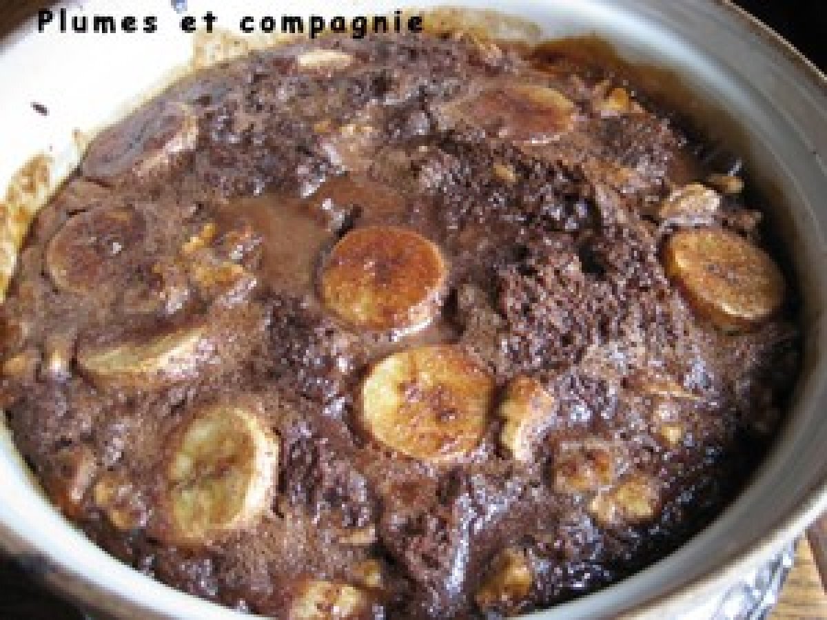 Les bananes du dessus sont légèrement caramélisé et c'est en bouche une explosion de saveurs: le moelleux des fruits et le léger croquant des noix ... un pur régal ...