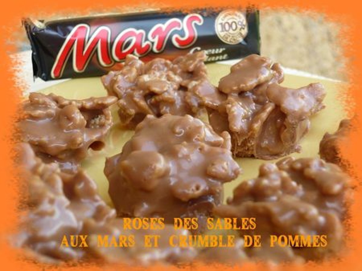 Roses des sables aux mars et crumble de pommes votez maintenant Autrefacile8 min608 Kcal Envoyer cette recette à un ami Imprimer cette page Poser une question à l'auteur Publier votre photo de cette recette Ingrédients 2 3 mars 20 g de beurre 40 g de corn flakes Special K façon crumble aux pommes 2 cuillères à café de crème liquide
