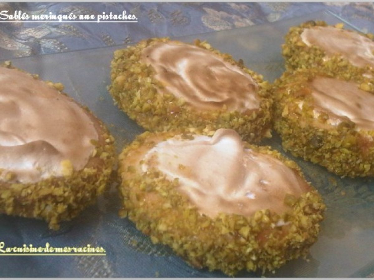 Sablés meringués aux pistaches. PrécédentSuivant Autrefacile30 min782 Kcal Envoyer cette recette à un ami Imprimer cette page Poser une question à l'auteur Publier votre photo de cette recette Ingrédients 4 225 g de farine 50 g de maïzena 125 g de beurre ramolli 100 g de sucre glace 1/2 sachet de levure chimique 3jaune d'oeufs 1 cuillère à café d'extrait de pistache Pour la meringue: 1 blanc d'oeuf 50 g de sucre en poudre Pour la décoration : confiture d'abricot 50 g de pistaches moulues Coût estimé: 3.08Euros€ (0.77€/part)