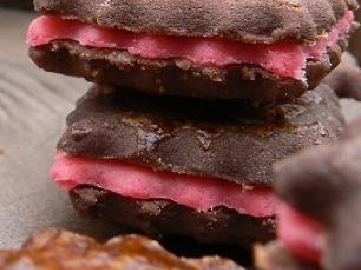 Sablés trés sablés au chocolat, fourrés de pâte d'amandes .