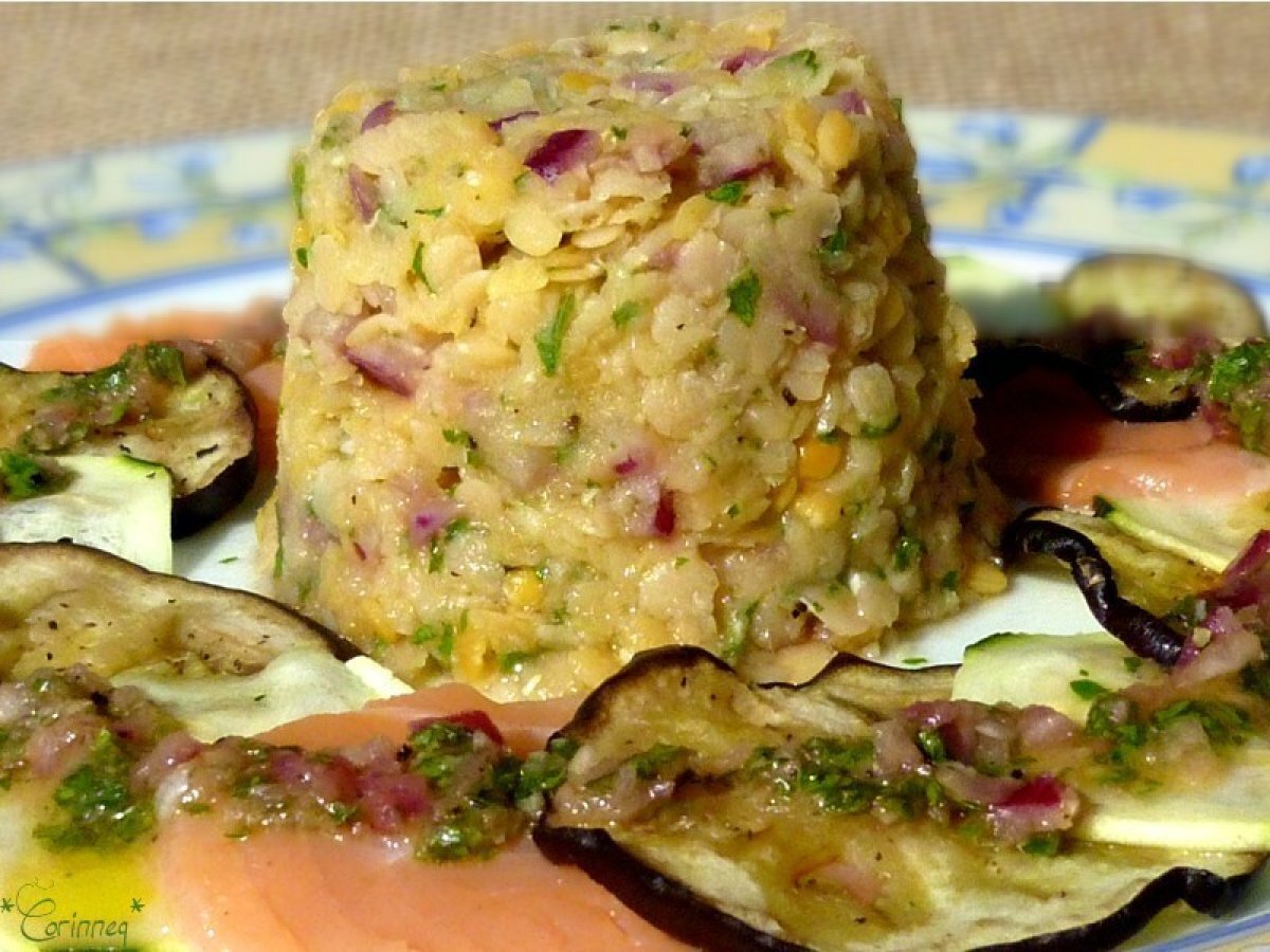 Salade de lentilles corail et carpaccio de légumes-saumon fumé Autrefacile30 min235 Kcal Envoyer cette recette à un ami Imprimer cette page Poser une question à l'auteur Publier votre photo de cette recette Ingrédients 8 200gr de lentilles corail 1/2 oignon rouge 1 grosse gousse d'ail 8 beaux brins de persil 1 aubergine 1 courgette 4 tranches de saumon fumé 8 cuillères à soupe d'huile d'olive 5 cuillères à soupe de vinaigre sel et poivre Coût estimé: 10.77Euros€ (1.35€/part)