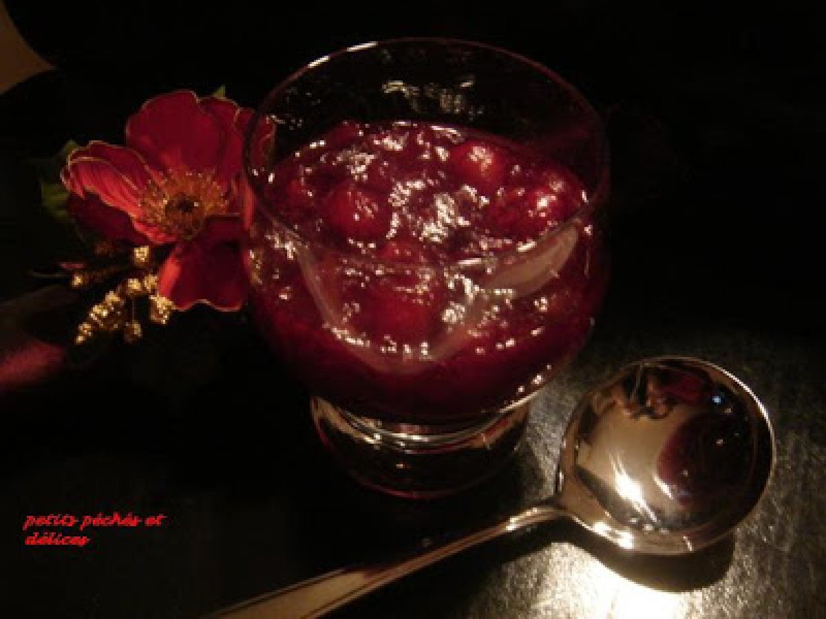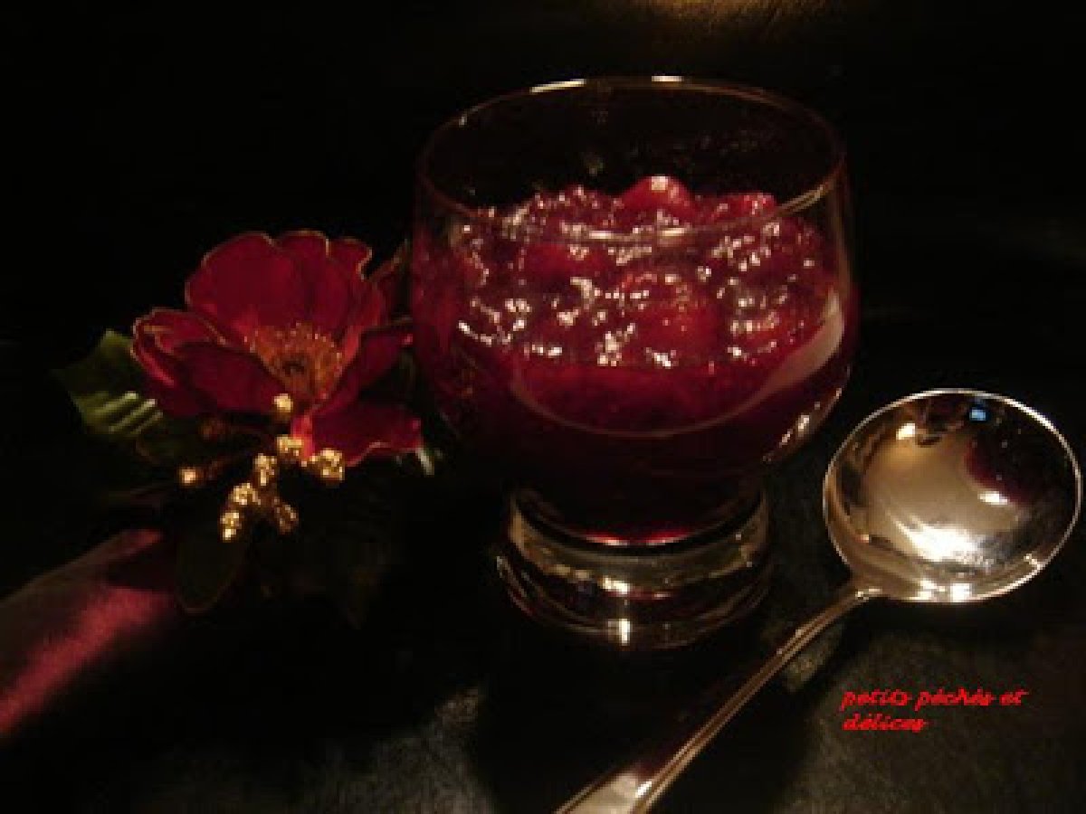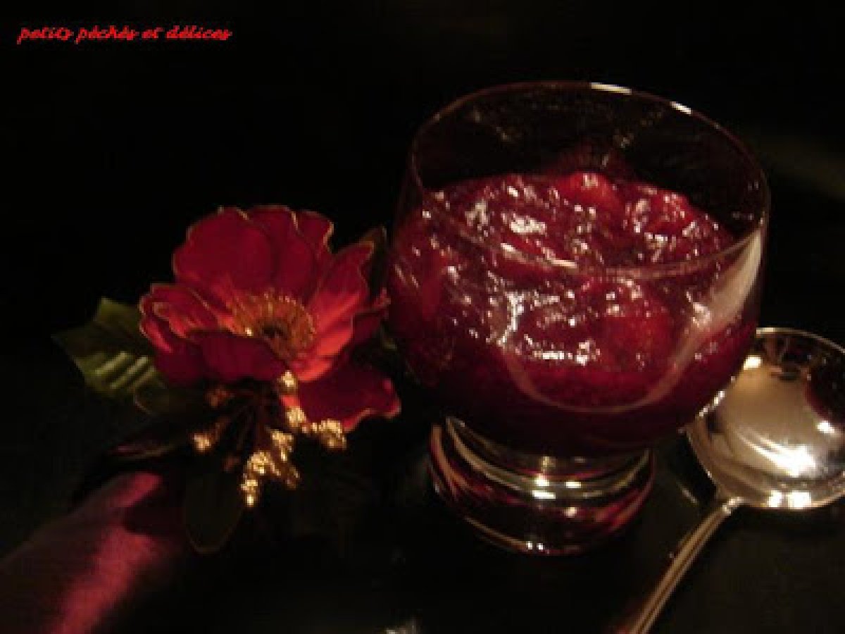 Une bonne sauce parfaite pour accompagner la dinde mais aussi pour servir sur des canapés de canard ou avec des terrines par exemple. La couleur est superbe et c'est beau et coloré.