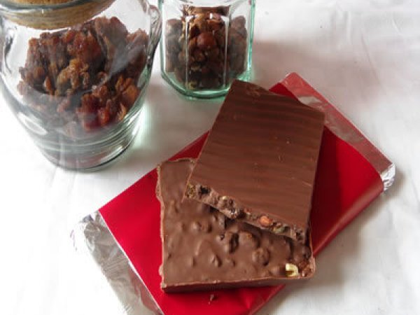 Tablette au chocolat au lait, noisettes et raisins secs Autremoyen15 min153 Kcal Envoyer cette recette à un ami Imprimer cette page Poser une question à l'auteur Publier votre photo de cette recette Ingrédients 8 . 170g de chocolat au lait . 30g de noisettes concassées . 30g de raisins secs Coût estimé: 2.32Euros€ (0.29€/part)