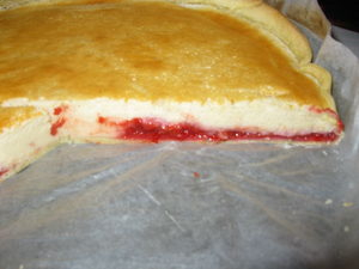 Tarte à la vanille et au coulis framboise-poivron rouge