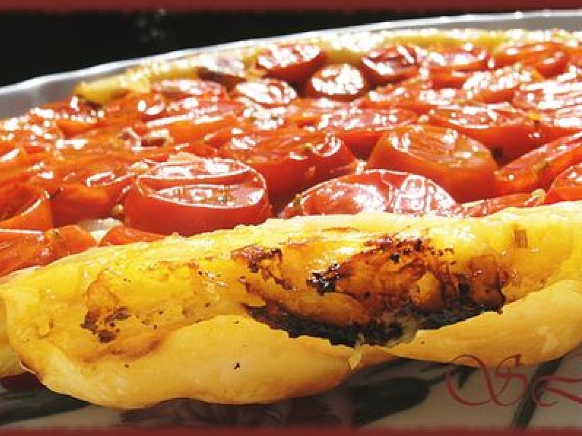 Tatin aux tomates cerises et fromage de chèvre PrécédentSuivant Autrefacile40 min342 Kcal Envoyer cette recette à un ami Imprimer cette page Poser une question à l'auteur Publier votre photo de cette recette Ingrédients 4 1 rouleau de pâte feuilletée 250 g de tomates cerises un peu dodues (enfin il en faut partout et très serrées) 2 tranches de jambon de votre pays 1/2 brique de chèvre régionale (ou pélardon) ciboulette fraîche Huile parfumée vinaigre de vin sel Coût estimé: 4.5Euros€ (1.13€/part)