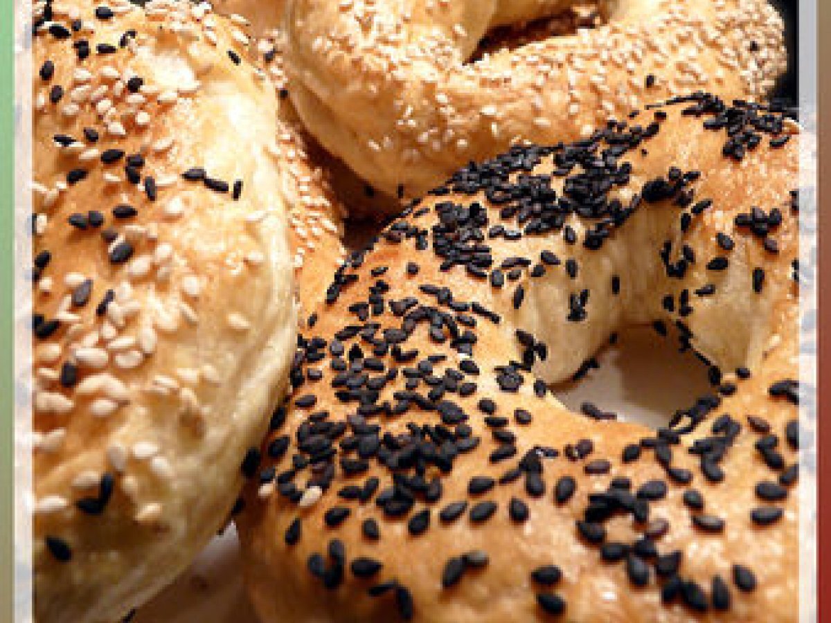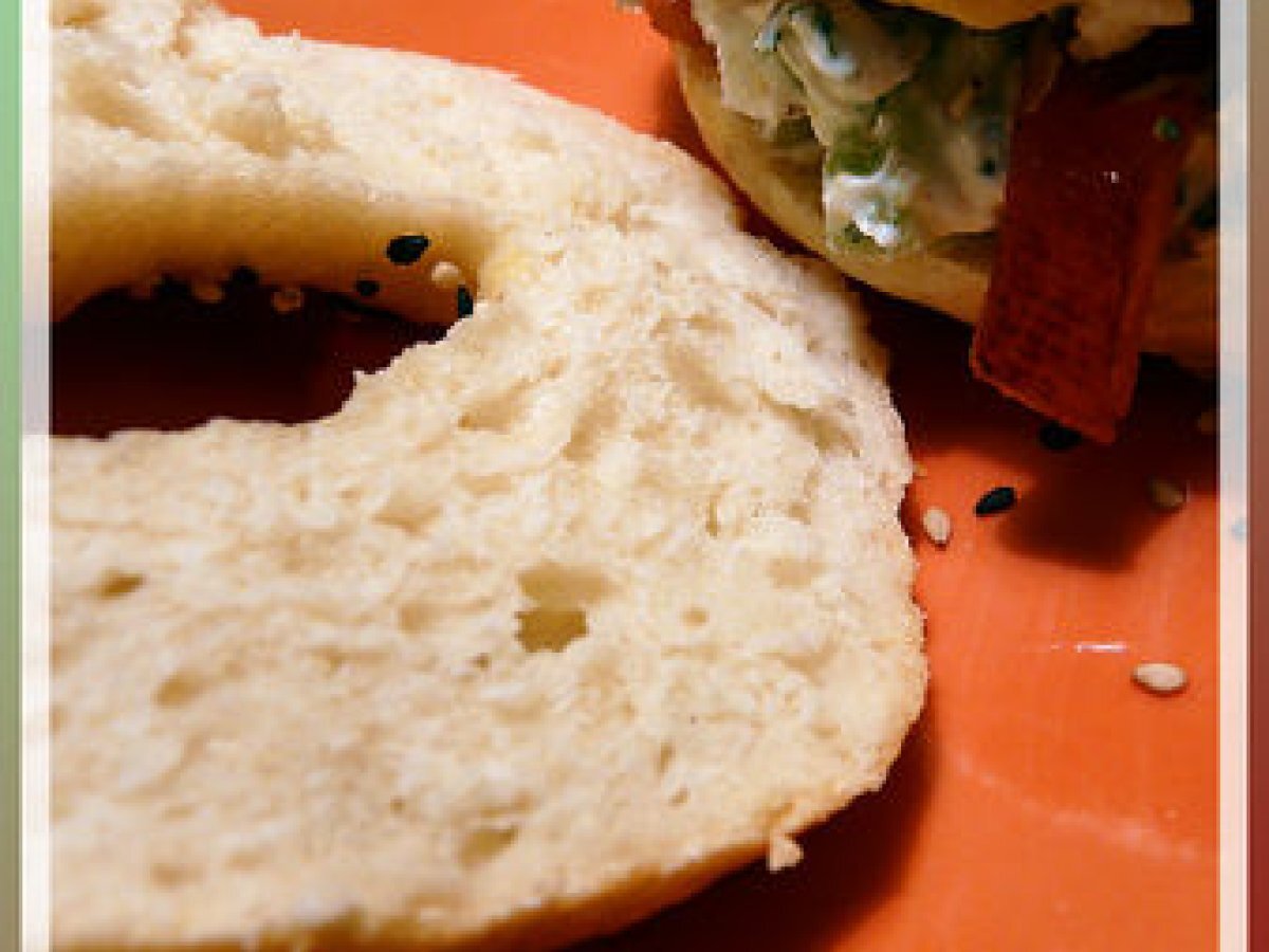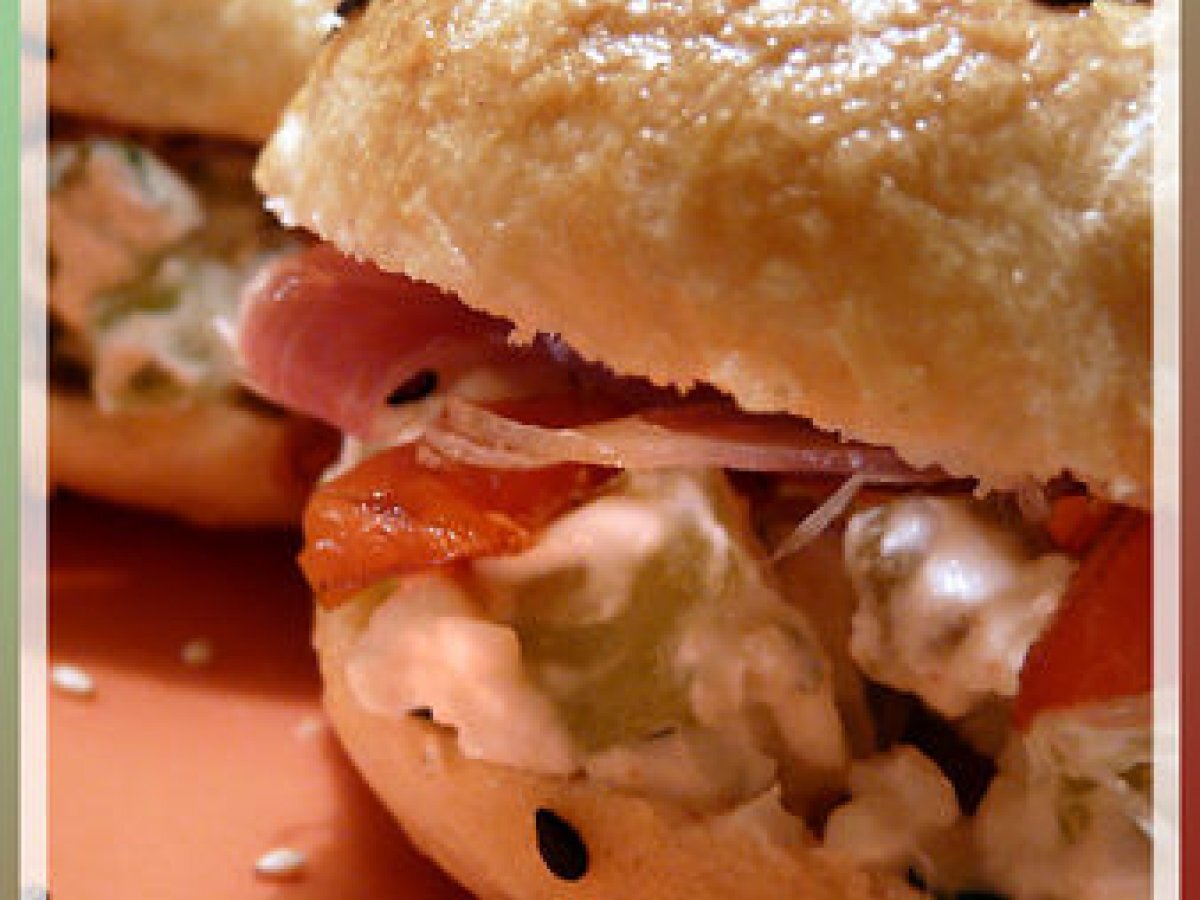 Tits bagels maison au chèvre frais, poivron grillé et jambon cru!