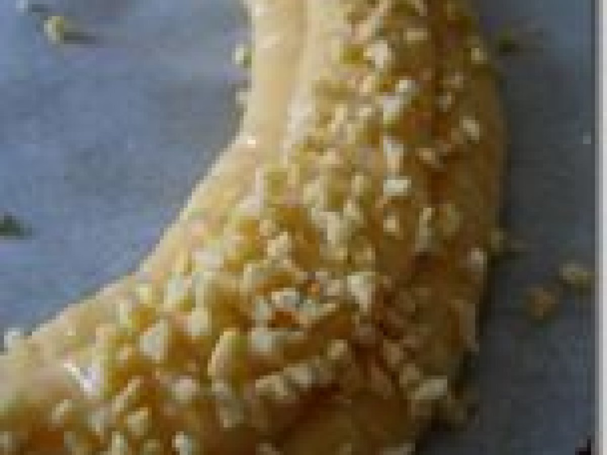 Passez dessus les dents d' une fourchette trempé dans un peu d' eau puis parsemez d' amandes hachées.