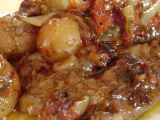 Ingrédients: 500 gr de boeuf dans le collier ou la joue. 2 oignons. 250 gr de lardons. 250 gr de carottes. 50 gr de concentré de tomates. 20 cl de bouillons de...