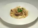 Ingrédients: 300g de filet de boeuf 300g de champignons sauvages 1 gousse d'ail 1 oignon rouge 2 cuillères à soupe de crème fraîche 1 petit morceau de beurre...