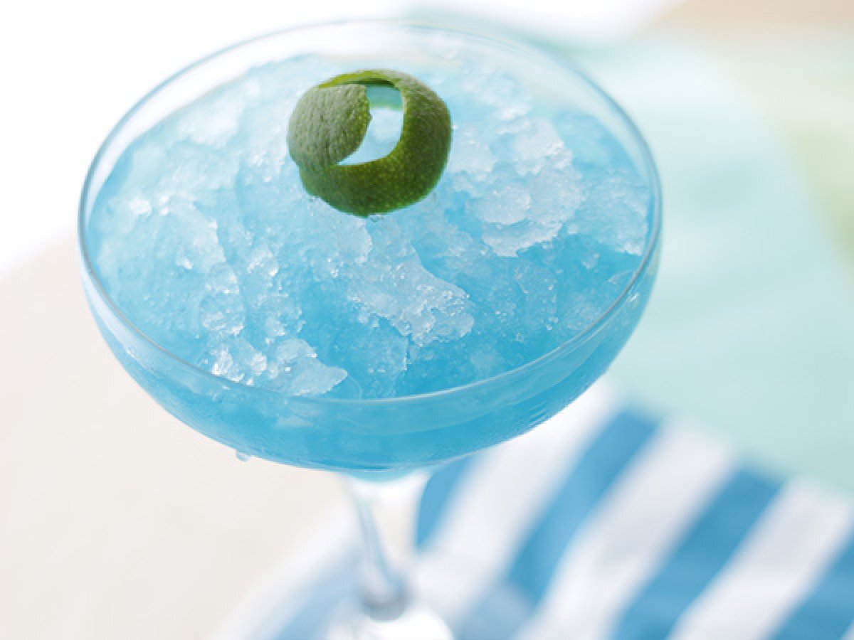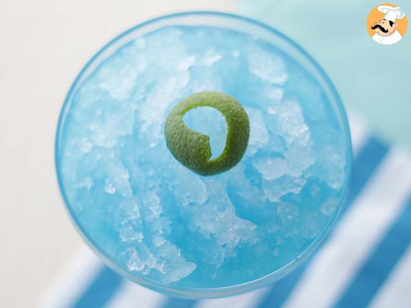 Décorer avec un zeste de citron vert. Votre Blue Lagoon est prêt !