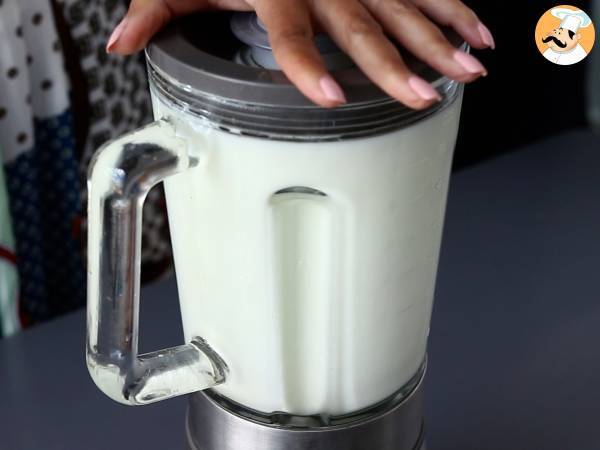 Remettre le liquide filtré dans le mixeur avec le lait concentré.