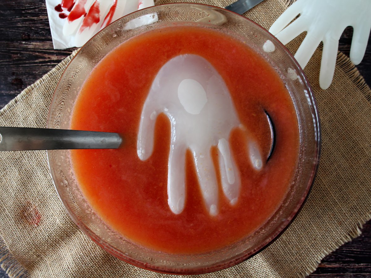 Cocktail d'halloween et son glaçon en forme de main - tuto facile !