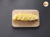 Laver soigneusement le citron sous l'eau et le presser légèrement en le faisant rouler doucement sur une table. Le couper ensuite en rondelles.