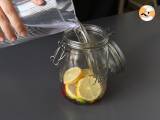 Enfin, ajouter l'eau. Fermer hermétiquement le contenant et laissez infuser au réfrigérateur pendant au moins 4 heures.