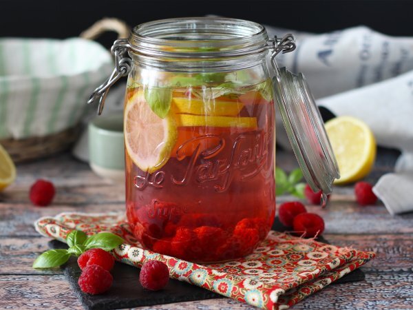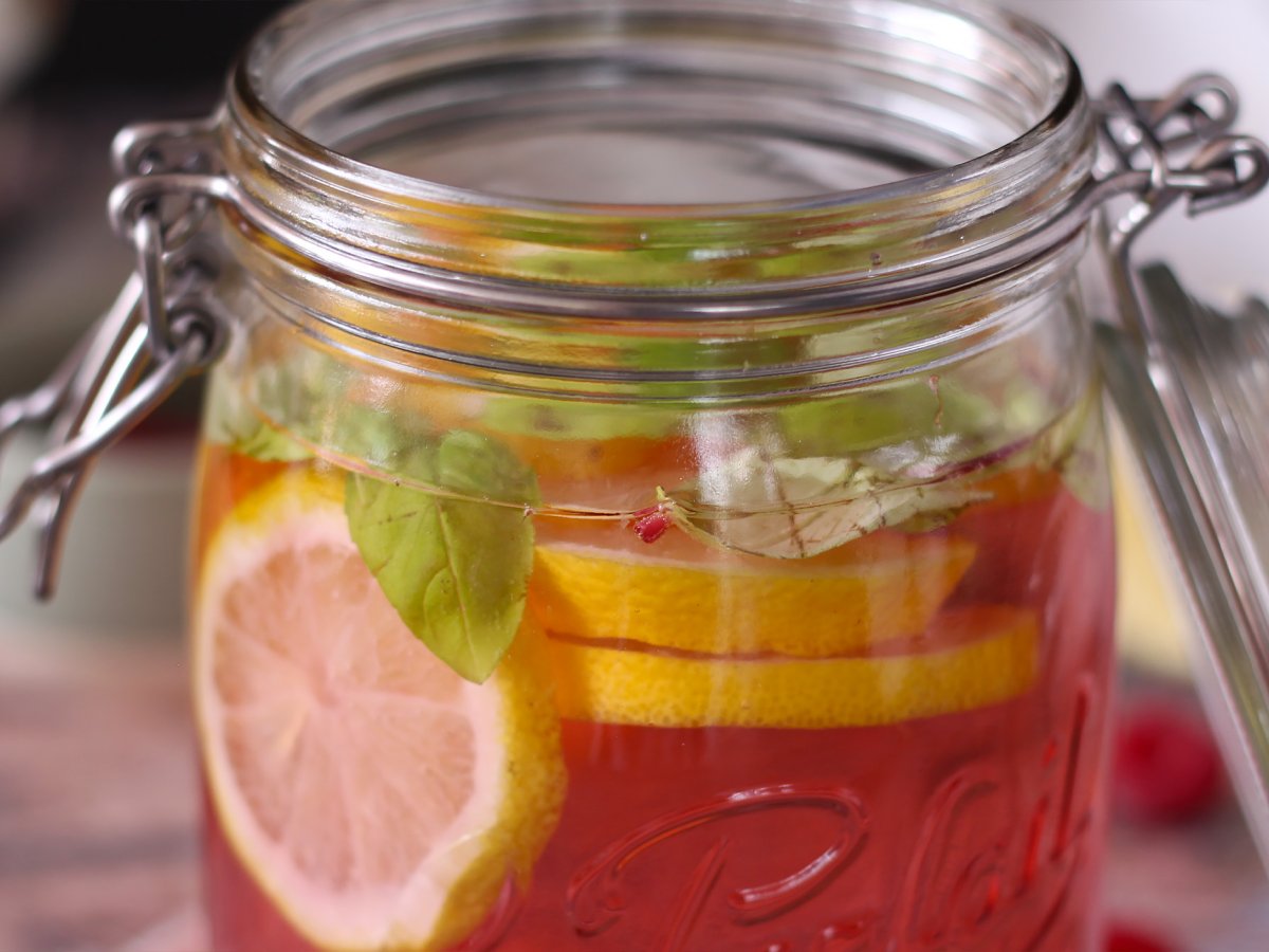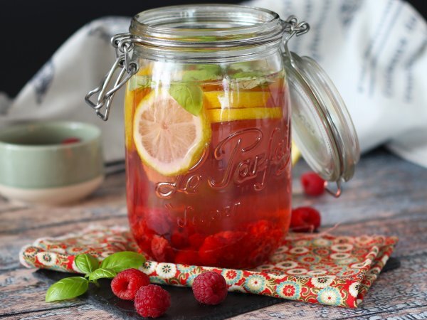 Et voilà, votre eau aromatisée au citron, basilic et framboise est prête !