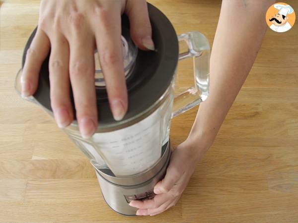 Dans un blender, mettre les glaçons, puis ajouter tous les autres ingrédients.