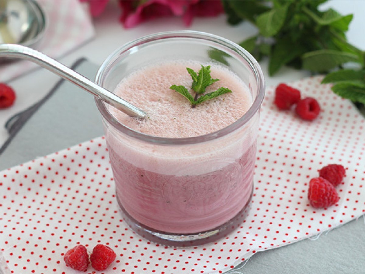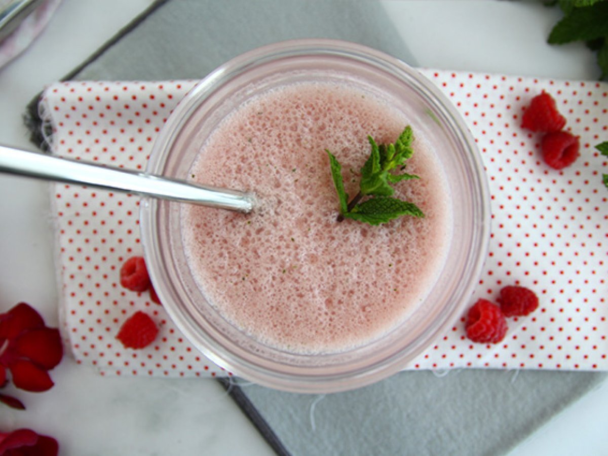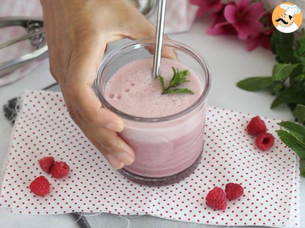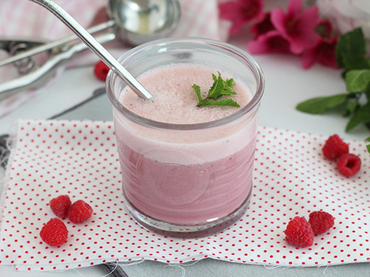 Avec seulement 3 ingrédients, préparez-vous une boisson extra fraîche pour le goûter. Au menu : milkshake framboise / menthe ! Idéal pour se rafraîchir lorsqu'il fait chaud. Côté préparation, vous n'aurez besoin que d'un blender. Mettez tous vos ingrédients dedans, mixez et... c'est tout ! Une recette qui sera également garantie sans lactose puisque la crème glacée présente dans les milkshakes classiques a ici été remplacée par du sorbet :-) Une alternative facile à retenir lorsque vous souhaitez vous préparer une pause sucrée sans produits d'origines animales.