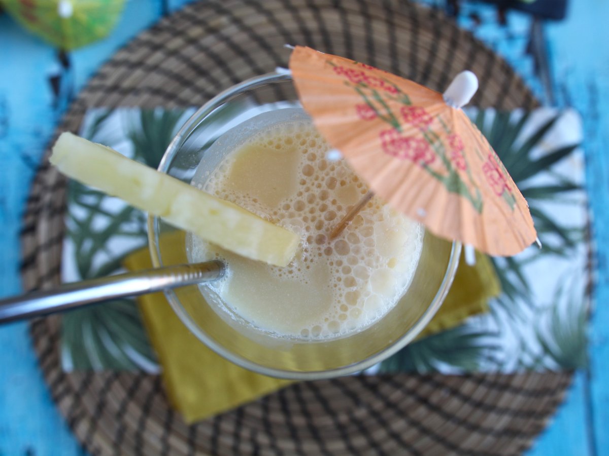 Verser le mélange dans un verre (vous pouvez ajouter des glaçons), ajouter une tranche d'ananas et un parasol pour décorer. Il ne vous reste plus qu'à mettre une paille et trinquer !
