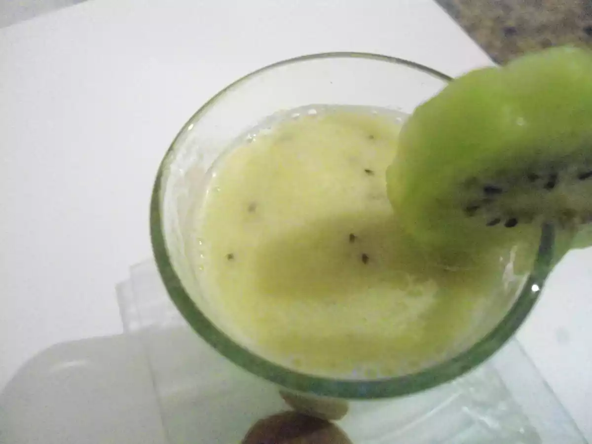 Smoothie banane kiwi PrécédentSuivant Boissonfacile5 min Envoyer cette recette à un ami Imprimer cette page Poser une question à l'auteur Publier votre photo de cette recette Voici un smoothie rempli de vitamines et super bon ! Ingrédients 2 Pour 2 personnes 1 bananes 5 kiwis 1 citrons 4 cuillères à soupe de sirop de miel . 1 càs de miel.