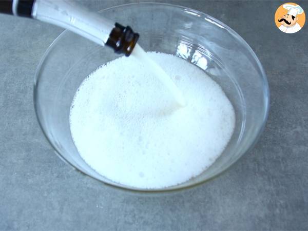 Dans un saladier, verser le contenu de la bouteille de champagne.