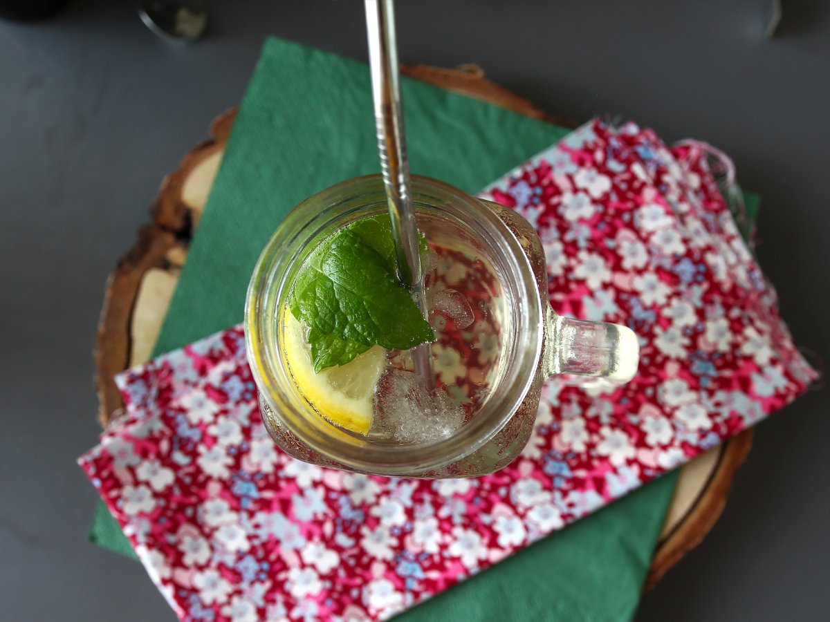 Enfin, ajouter une tranche de citron ou de citron vert et quelques feuilles de menthe fraiche.