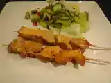 Ingrédients: 1/ 200 g de poulet en cubes 3 cuillères à soupe de beurre de cacahuètes 2 cuillères à soupe de sauce soja 2 cuillères à soupe de "sweet chili"...