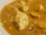 Ingrédients: 1 c. à soupe d'huile d'olive 1/2 oignon 500 gr de poireaux Sel Poivre 1 (grosse) c. à soupe de curry 20 cl de lait de coco Pour décorer : Coriandre...