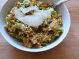 Ingrédients: 1 poireau 1 escalope de poulet 1 cac de curry (Massala) 2 cac de crème de soja 1 cac de nuoc-mam (ou de tamari) 1 cac d’estragon