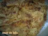 Ingrédients: * 500 g du blé (Semoule fine) * 500 g de farine (forse) * Sel * un peu de levure * un peu d'eau tiède (3la hsab 3gina) La farce: * 1 oignon * khli...
