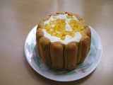 Ingrédients: 2 conserves d'oreillons d'abricots 1 conserve de mangue 24 biscuits cuiller 3 x 4 g d'agar agar 300 g de crème liquide