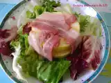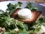 Ingrédients: de la mâche 3 tranches de pain quelques noix 1 pomme golden 3 ronds de chèvre du vinaigre de cidre de l'huile 1 cuillère à café de moutarde du miel