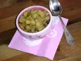 Ingrédients: 1 kg environ de pommes et de poires 10 cl d'eau 2 cuillères à soupe de purée d'amandes blanches 1.5 cuillères à soupe de sirop d'agave 1 petite...