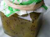 Ingrédients: 1 quinzaine de kiwis 1 morceau de gingembre 150 g de sucre de canne 1 cuillère à café de cannelle 1 cuillère à soupe de muscade