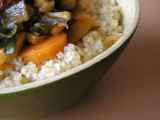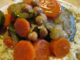 Ingrédients: 200g de semoule à couscous moyenne 1 cuillère à soupe de raisins blonds secs 1 cuillère à café d'huile d'olive 75cl de bouillon de légumes 1/2...