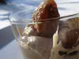 Ingrédients: 200 g fromage blanc 2 cuillères à café de crème de marron 1 clémentine confite 2 cuillères à café de confiture de poire vanillée 1 biscuit sablé