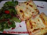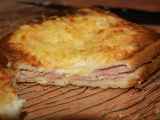 Ingrédients: 8 tranches de pain de mie 4 grandes tranches d'emmental 4 tranches de jambon blanc 70 gr de fromage râpé 30 gr de beurre 30 gr de farine ½ l de...