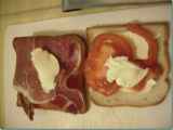 Ingrédients: Pour 2 personnes : -4 tranches de pain de mie -100g de viande hâchée de boeuf -1/2 oignon -4 rondelles de tomate -1 tranche de jambon fumé coupée...