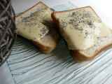 Ingrédients: 12 tanches de pain de mie complet Un pot de crème fraîche épaisse Mozzarella mimolette Pyrénée noir