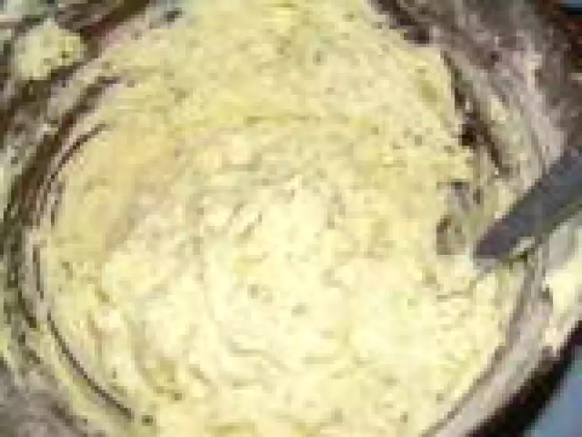 Mélanger à votre purée maison : deux oeufs (selon la quantité de purée qu'il vous reste), de la farine, du persil et des ciboulettes hachés. Il faut que votre purée ne soit plus collante.