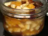 Ingrédients: 4 pommes golden 2 oranges 1 à 2 cas d'eau de fleur d'oranger 1/4 cc de cannelle 1 cas de sucre (j'ai mis la moitié) 8 dattes medjoul (mes préférées)
