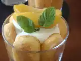 Ingrédients: 12 boudoirs (peut varier selon la taille des coupes) 2 cuillères à soupe de sucre en poudre 7 pêches 1 blanc d’oeuf 1 cuillère à café d'agar agar...