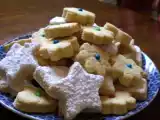 Ingrédients: 165 g de beurre ramolli 1 jaune d'oeuf 65 g de sucre glace 65 g de farine de mais 1 càc d'estrait de vanille 1 pincée de sel 250 g de farine,...
