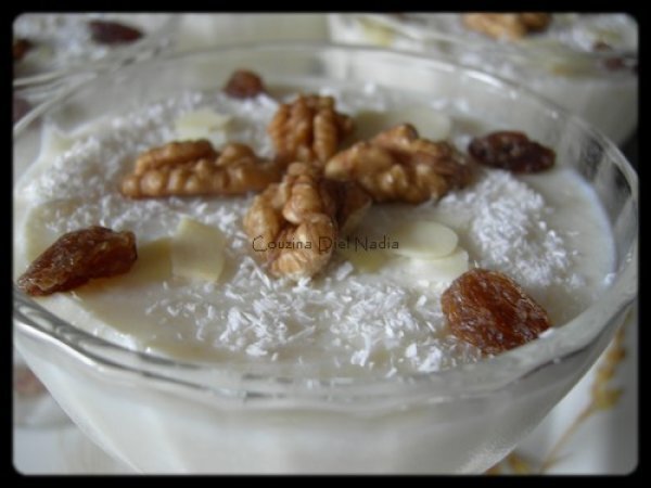 - Au moment de servir, décorer de noix de coco râpée, de pistaches concassées, d'amandes ou de noix concassées.