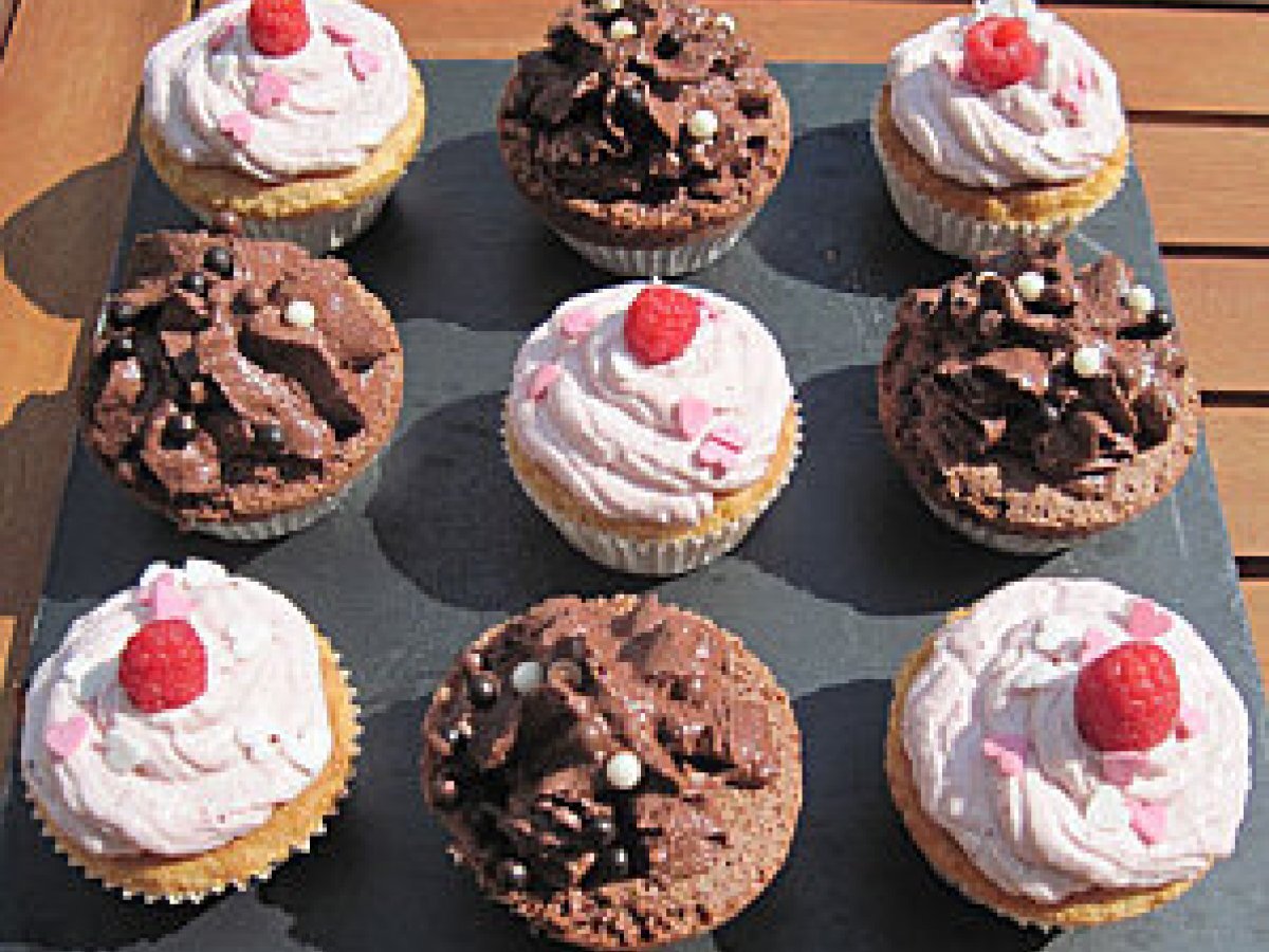 Assortiment cupcakes mousse framboises/mascarpone et mousse au chocolat