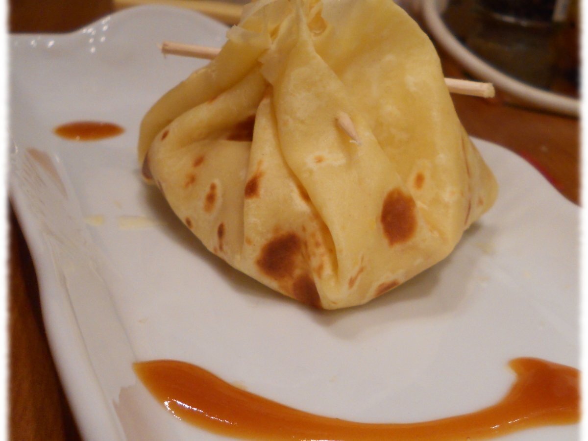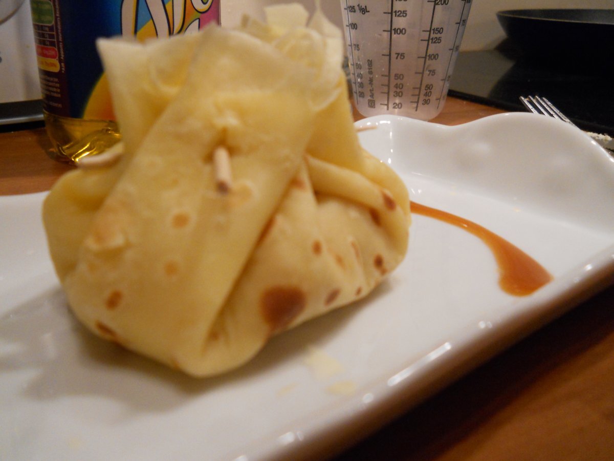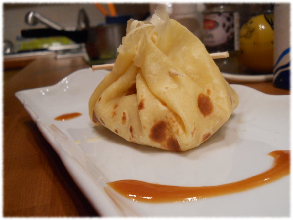 Aumônière de crêpe à la pomme et au caramel de beurre salé, parfait pour les froides soirées d'automne ;)