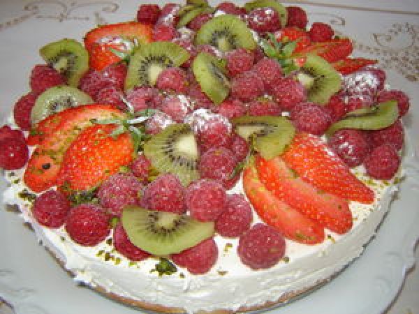 Bavarois au fromage blanc et fruits de trinidad Dessertfacile50 min Envoyer cette recette à un ami Imprimer cette page Poser une question à l'auteur Publier votre photo de cette recette Ingrédients 8 Pour le biscuit : 3 oeufs 125 g de suvre 75 g de beurre fondu 125 g de poudre d'amande 1 bouchon de rhum 1/4 à 1/3 de fève tonka Pour la mousse : 4 feuilles de gélatine 40 cl de crème liquide entière 50 g de sucre glace 20 g de kirsch 400 g de préparation de fromage blanc à 0% Taillefine Décoration : 250 g de framboises 125 g de fraises 1 kiwi Pistache concassée