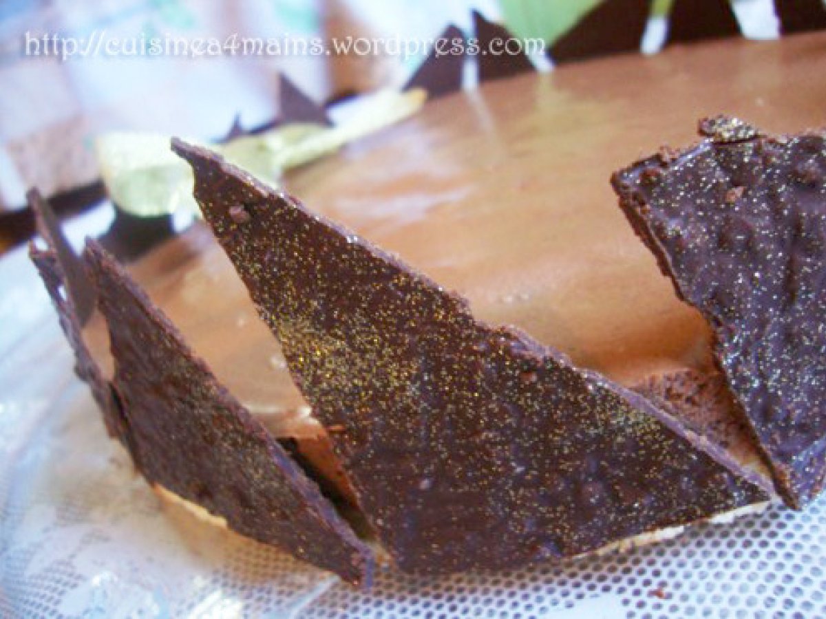Bavarois choco-orange pour un double anniversaire PrécédentSuivant Dessertmoyen30 min Envoyer cette recette à un ami Imprimer cette page Poser une question à l'auteur Publier votre photo de cette recette Ingrédients 4 Génoise : 3 oeufs 90 g de sucre 50 g de farine + 40 g de fécule de maïs 1 cuillère à café de levure chimique Bavarois au chocolat : 200 g de chocolat noir 8 g de gélatine 1 oeufs + 3 jaunes 100 g de sucre 25 cl de crème liquide 1 sachet de sucre vanillé Crème à l'orange : 1 oeuf 1 cuillère à soupe de sucre 1 cuillère à soupe de maïzena 125 ml de jus d'orange 1 noix de beurre Croustillants de chocolat ½ feuille de brik 60 g de chocolat noir Paillettes alimentaires dorées