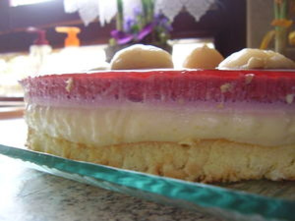 Bavarois rose-litchi-framboise. votez maintenant PrécédentSuivant Dessertmoyen2 h 12 m307 Kcal Envoyer cette recette à un ami Imprimer cette page Poser une question à l'auteur Publier votre photo de cette recette Ingrédients 15 Pour le biscuit : 3 oeufs 100 g de sucre glace 80 g de farine 20 g de Maïzena 4 cuillères à soupe de sirop de rose Pour la crème anglaise : 8 cl de lait (écrémé ) 10 cl de crème liquide (5% ) 2 jaunes d’oeufs 50 g de sucre en poudre 1 cuillère à café de vanille liquide 6 feuilles de gélatine 1 cuillère à café de Maïzena Pour la mousse de litchis : 30 cl de crème fleurette entière 2 boîtes de litchis égouttés 3 cuillères à soupe de sucre Pour la mousse de framboises : 700 g de framboises décongelées 3 cuillères à soupe de sucre Pour la confiture gélifiée : 1 pot de confiture de letchi BAOTAK 3 feuilles de gélatine